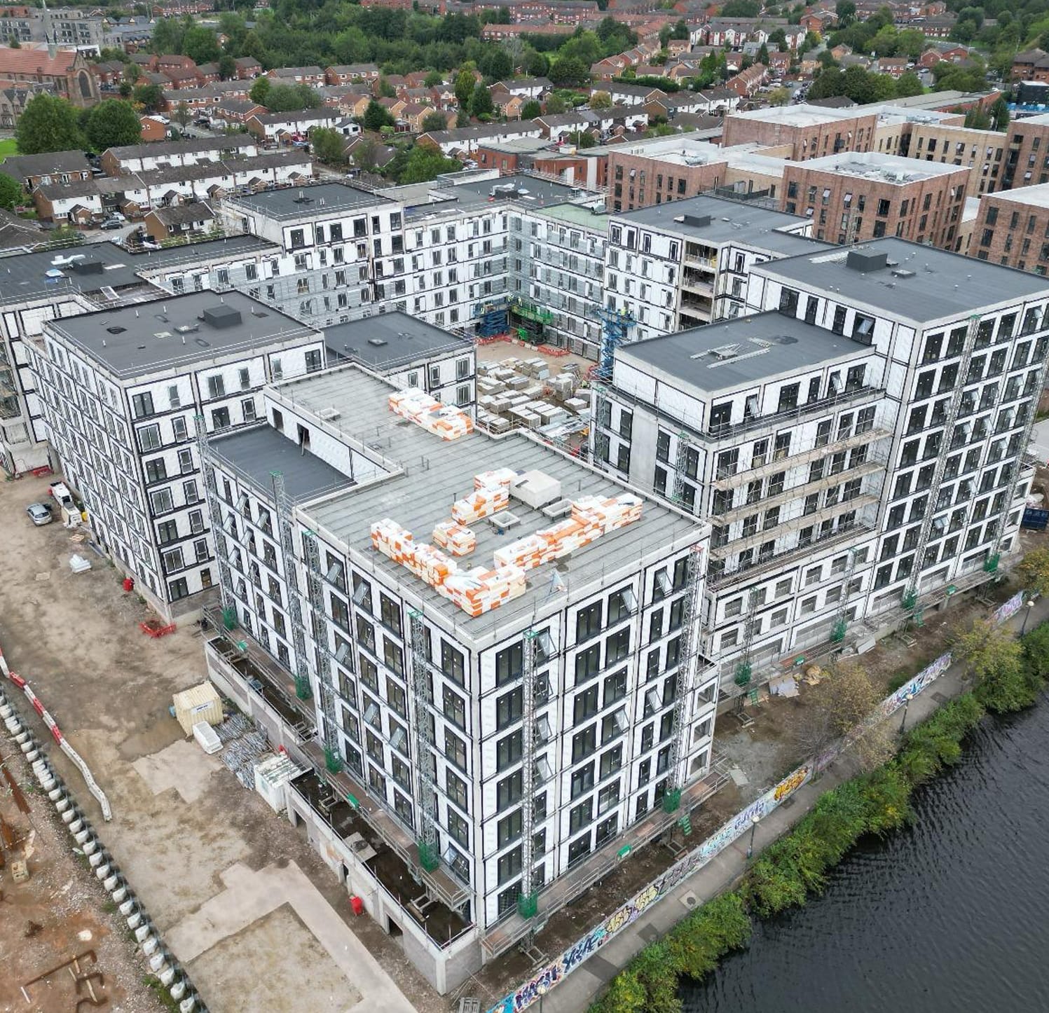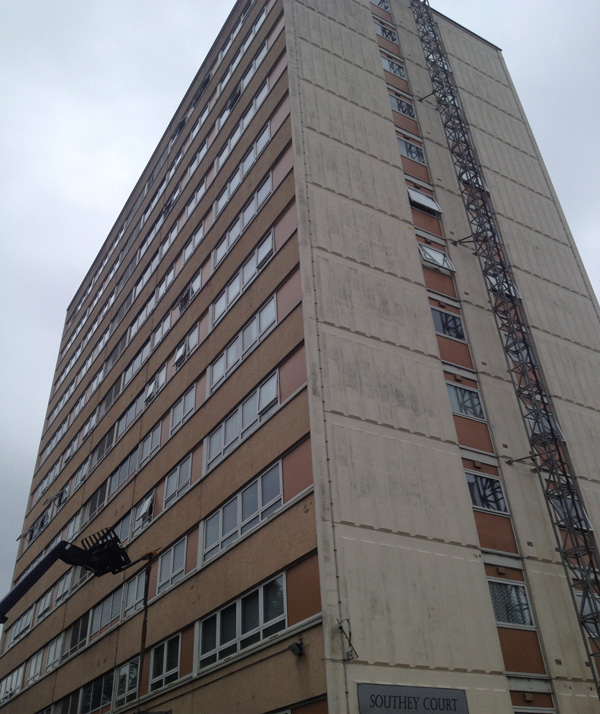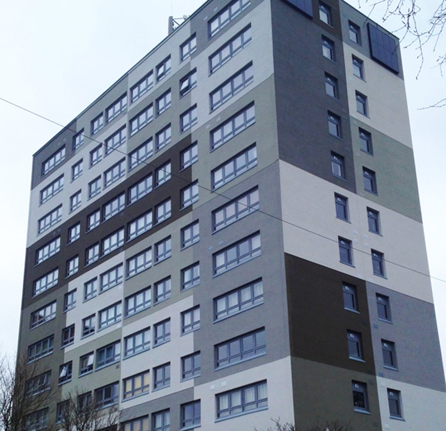 EWI scheme on a high-rise social housing development, delivering improved thermal performance.