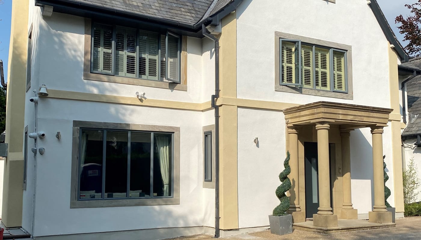 Installation of a silicone thin coat render system, with the addition of column details, to a large residential property.